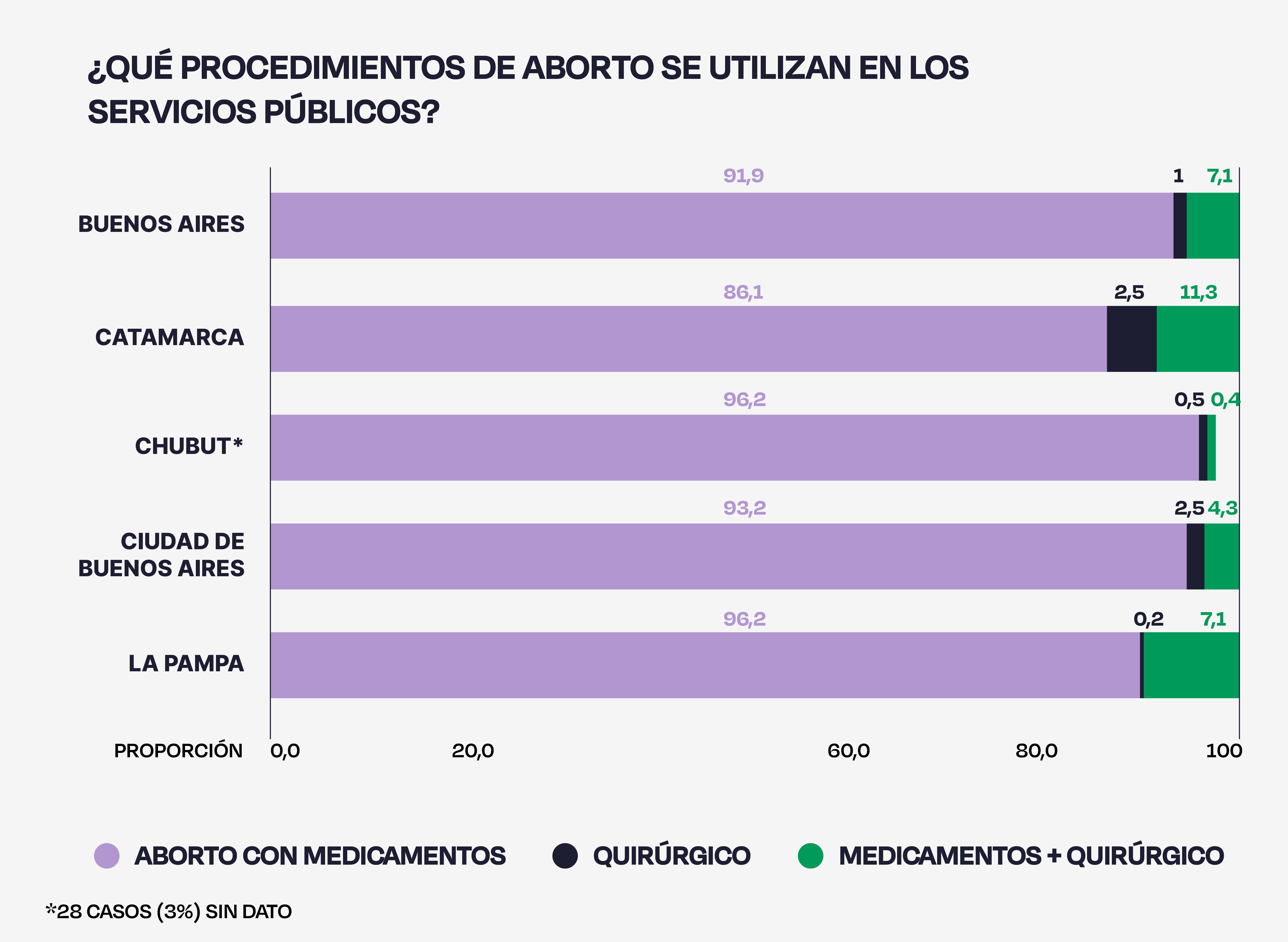 En el reporte “ Calidad: el desafío a dos años de la Ley de Aborto ” presentado por Proyecto Mirar, iniciativa que monitorea el acceso a la interrupción voluntaria y legal del embarazo (IVE/ILE), en Argentina se explica que el comportamiento que observan entre oferta y acceso efectivo no es lineal, y que esto “puede explicarse por la heterogeneidad de las jurisdicciones: en algunas, el acceso está concentrado en pocas instituciones que garantizan muchas prácticas mientras que en otras la oferta está distribuída en múltiples instituciones”.